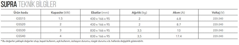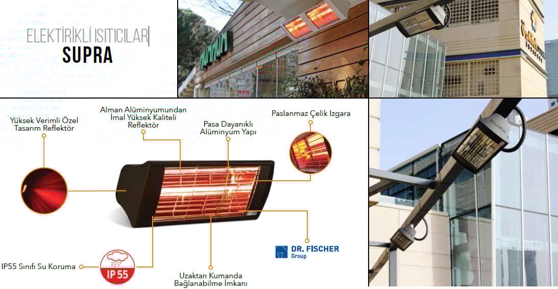 Supra serisi kısa dalga infrared teknolojisi kullanan yüksek verimli elektrikli bir ısıtıcıdır. cihaz içerisinde yer alan ve ilk sıcaklığı 2250C Dereceye ulaşan halojen ampul vasıtası ile ısıtma yaparlar.